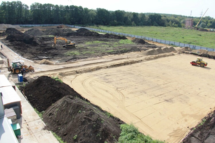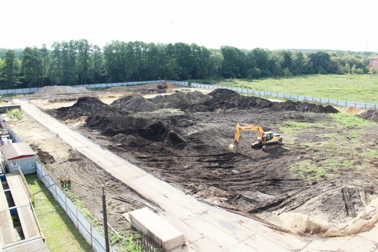 На строительной площадке обустроен бытовой городок, установлен пункт мойки колес автотранспорта, разбиты оси фундаментов, проложены временные технологические дороги, откопаны котлованы фундаментов общим объемом более 6000 куб. метров, заканчиваются работы по устройству песчано-гравийной подготовки с вибрационной трамбовкой основания и контролем его плотности. Значительная часть извлеченного из котлованов торфа передана муниципальным структурам округа для благоустройства школ и детских учреждений.