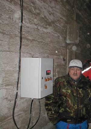 Расходомер установлен на крыше 60-тонной сушилки, под открытым небом. Зерно подается в него непосредственно из головки нории по наклонному самотеку. Вторичный прибор расходомера в пыленепроницаемом шкафу установлен в приямке норий, непосредственно около реечной задвижки, регулирующей расход зерна в норию.