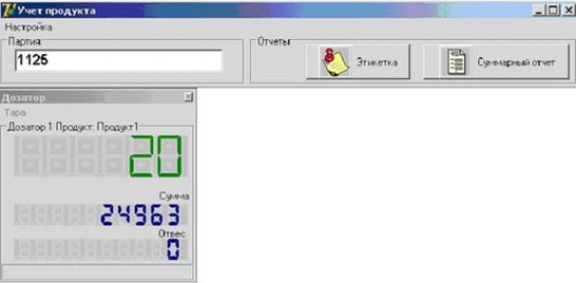 Для организации весового учет продукта на комплексах фасовки, построенных на базе дозаторов «Гамма». Отображает текущее состояние и параметры дозатора, организовывает сбор, обработку и передачу учетных данных в систему обработки и хранения данных