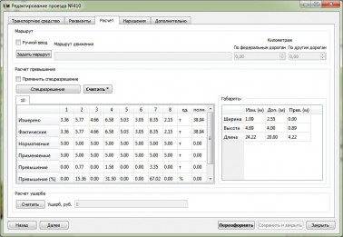 • Расчет перегруза, как в весовом, так и в процентном соотношениях, согласно постановлению № 12 и 248-ФЗ;