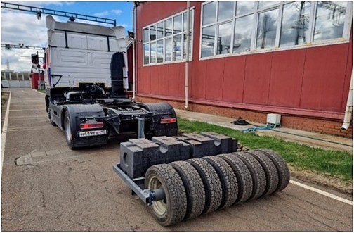 Компания арендовала семикилометровую динамометрическую дорогу Дмитровского полигона Государственного научного центра Российской Федерации ФГУП «НАМИ». На этой трассе были выполнены проезды пятиосной «фуры» с полной массой около 40 тонн со скоростью более 130 км/ч и максимальной осевой нагрузкой 11,5 тонн (при требуемых согласно [1], [2] максимальных значениях скорости и разрешенной полной массы, а также осевой нагрузке, равной 60% от предельной). Большую осевую нагрузку дирекция полигона воспроизводить запретила во избежание порчи этой дороги, являющейся, по сути, народным достоянием.