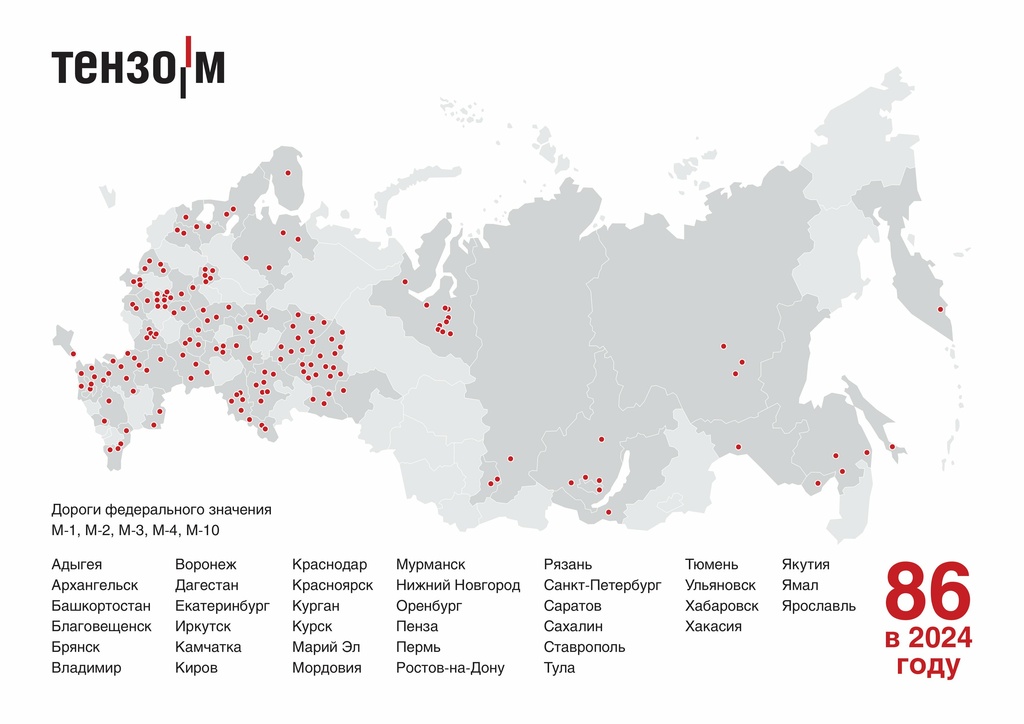 Рис. 5. Более 500 полос движения на дорогах 37 регионов России оборудованы системой «СВК» производства АО «Весоизмерительная компания «Тензо-М»