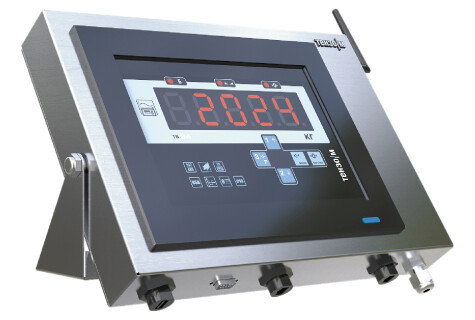 Промышленный компьютер с сенсорным экраном в корпусе из нержавеющей стали. Терминал оснащен специализированным ПО для связи с весовым обрудованием